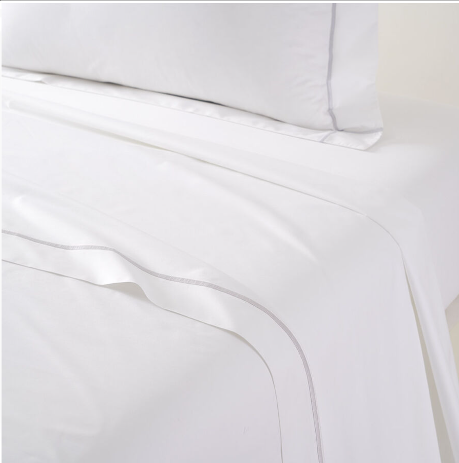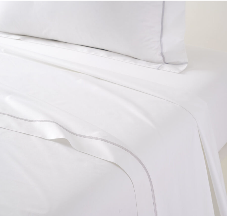 - 1 King Flat Sheet, White with Silver Embroidery 114” x 116”